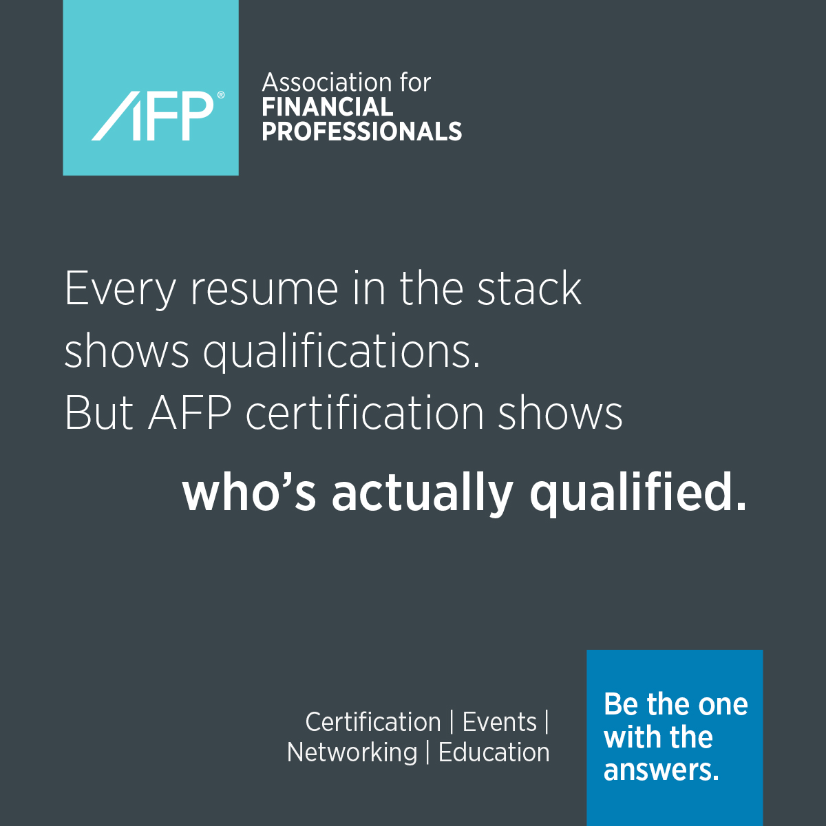 For decades, the Association for Financial Professionals (AFP) has been the trusted resource for finance professionals looking to earn certifications, advance their careers, and stand out.